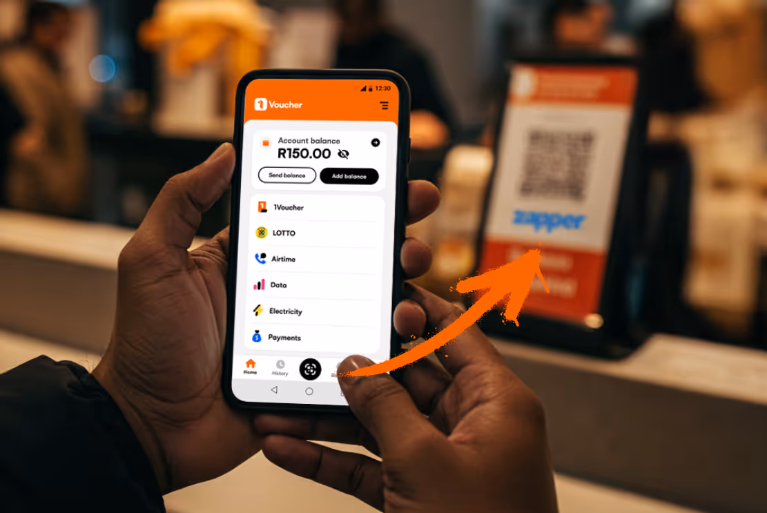 Use the 1Voucher app to scan to pay any Zapper merchant. No card, no bank account, no fees – just load cash onto the app, scan, and pay with your phone.